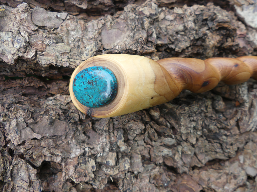 Eibenholz aus dem Bremer Umland mit Chrysokoll, Länge: 14,5 cm