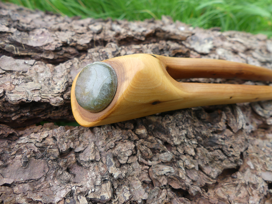 Um lange Haare besonders bruchschonend hochzustecken, sind traditionelle Haarstäbe und Forken bis heute die beste Wahl. Aus hübschen Hölzern, kombiniert mit Edelsteinen ergibt sich das für meinen Geschmack perfekte Utensil um die wilde Mähne zeitweise zu bändigen. Zu beachten ist lediglich die Länge und Dicke des Stabes, die grob auf die persönliche Haarlänge- und dicke abgestimmt sein sollte.